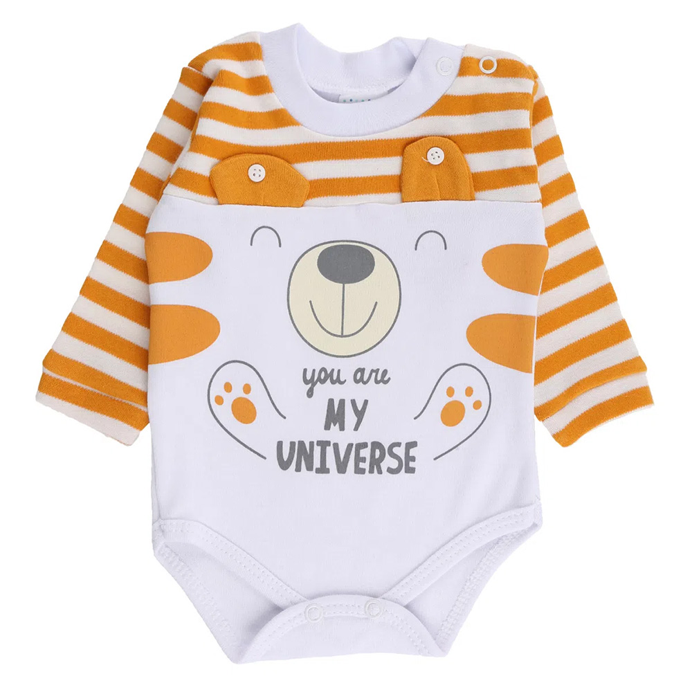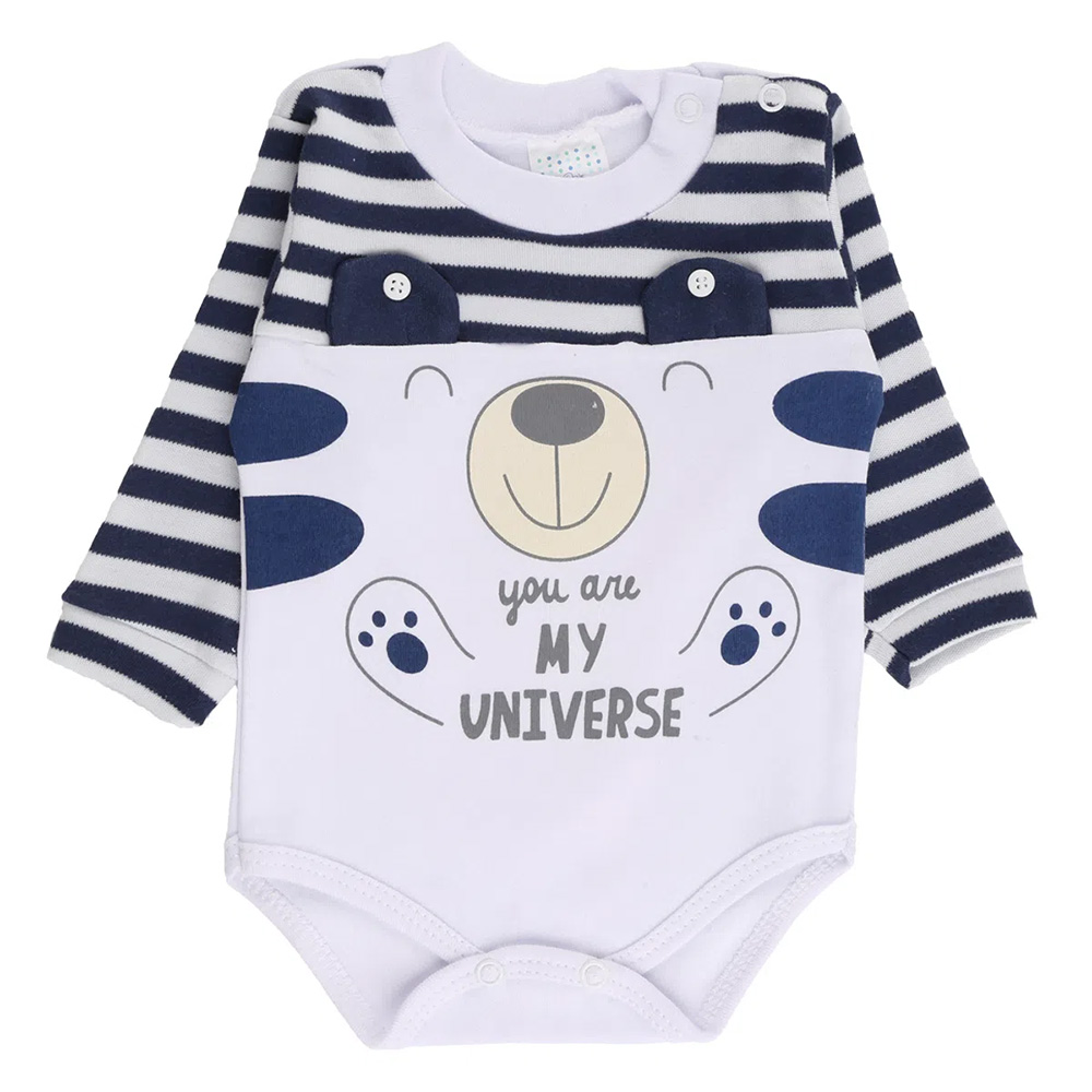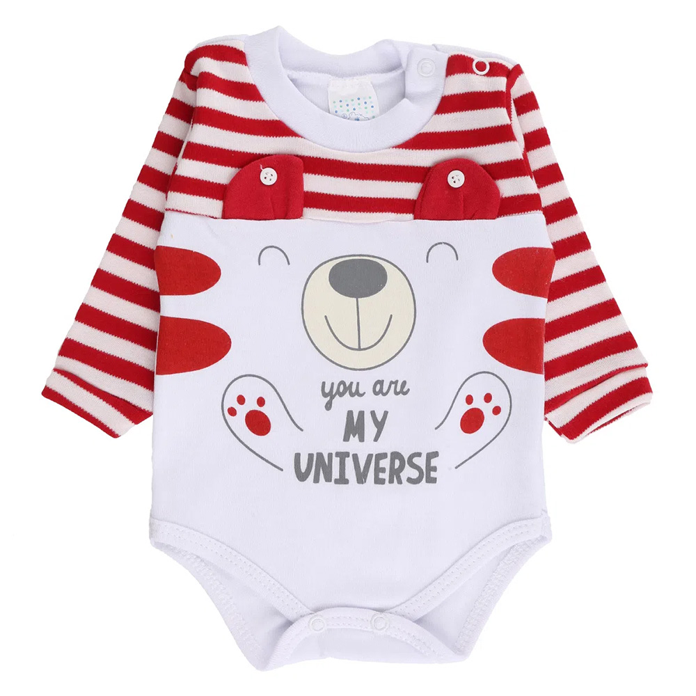 O body é confeccionado em tecido super macio que proporciona conforto e garante uma modelagem perfeita ao corpo, possui estampa fofa de ursinho com detalhe de orelhas.